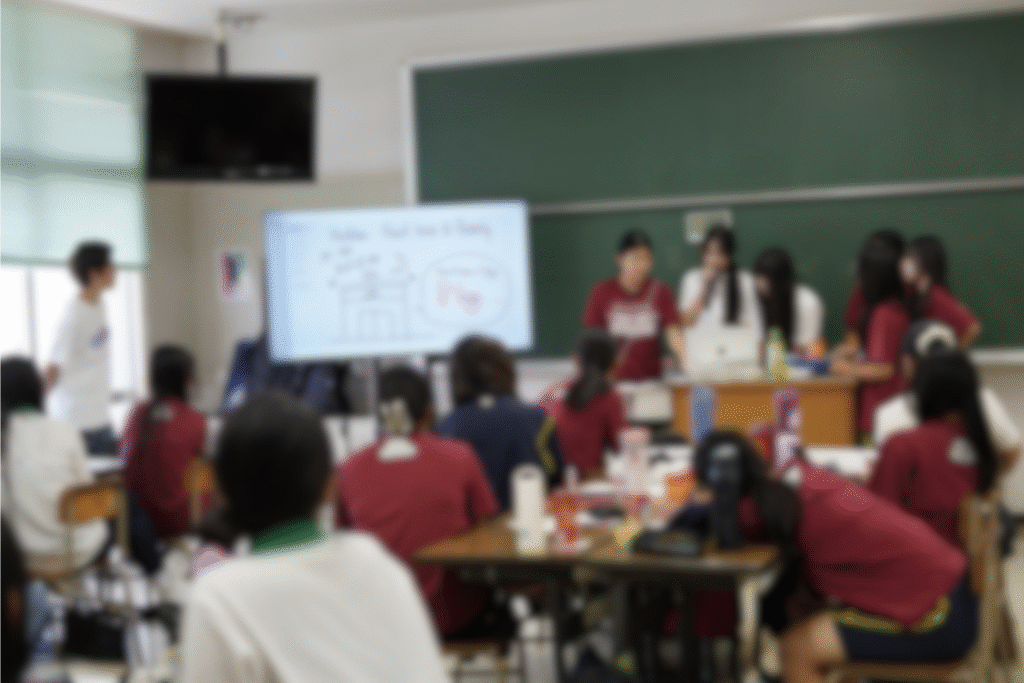 学校側のご要望により、今回はできる限り英語でプログラムを提供いたしました。 1年生には授業1コマ分を活用し、通常プログラムを短縮した形式で実施しました。短縮版では、英語を使ったアイスブレイクやチームビルディング活動を行い、それらを通じてリーダーシップについて考える時間を設けました。 2年生に対しては、授業2コマ分を使ってより発展的な内容に取り組んでいただきました。地域社会が抱える課題に焦点を当て、各チームで英語によるアクションプランの立案を行うことで、実践的なリーダーシップスキルの習得を目指しました。